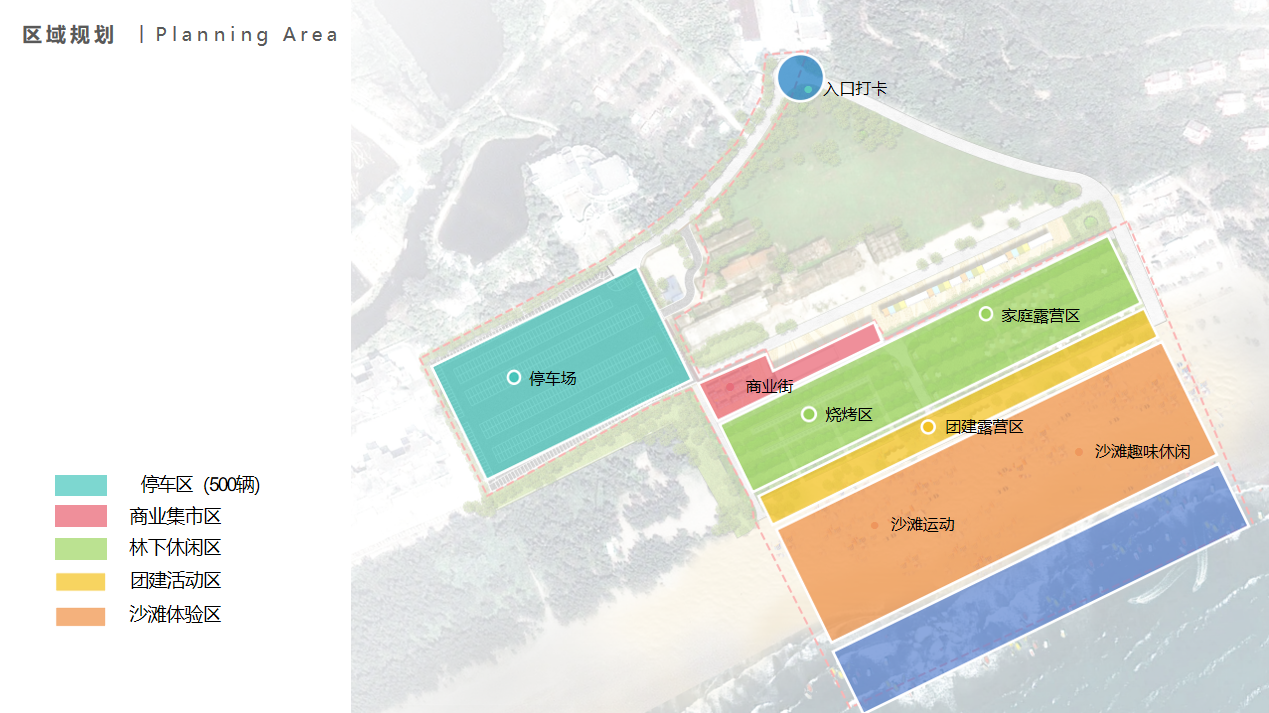 營地共設4個功能區(qū),商業(yè)集市區(qū)、林下休閑區(qū)、團建活動區(qū)、沙灘體驗區(qū)(具體功能分區(qū)詳見附件一)。本次招商活動主要針對商業(yè)集市區(qū)、林下休閑區(qū)、沙灘體驗區(qū)。