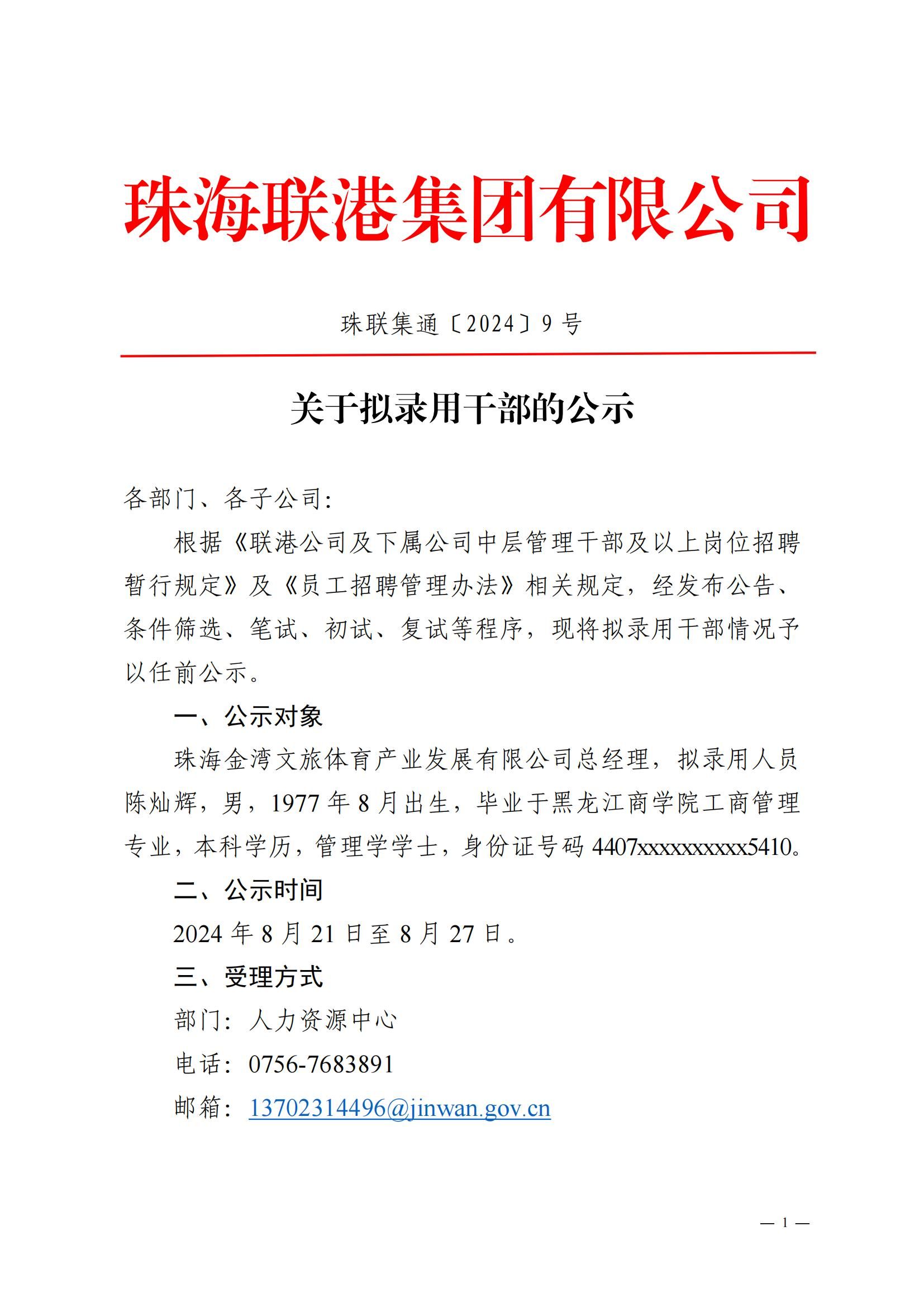 珠聯(lián)集通〔2024〕9號 關于擬錄用干部的公示