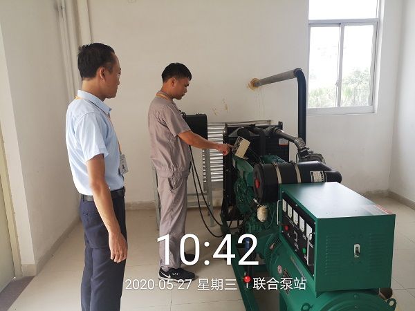 與此同時(shí),演練還模擬暴雨、臺(tái)風(fēng)天氣突發(fā)停電時(shí),水泵無(wú)法正常工作,值班人員立即切斷市電總開(kāi)關(guān),并啟動(dòng)備用發(fā)電機(jī)為水泵供電,確保泵站的照明及泵站各閘門(mén)的正常啟閉。