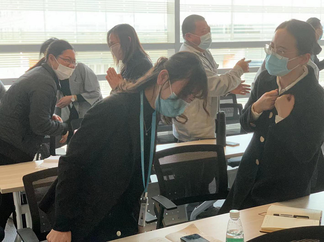 本次課程分為禮儀與情商、職場印象管理和有效溝通技巧三部分。王彥群老師先用生動幽默的語言講授了禮儀與情商的深層蘊(yùn)意,禮儀的根本是尊重-尊重他人、尊重自己、尊重所有人,在與人交往中要有主動意識,懂得換位思考。之后王彥群老師用現(xiàn)場教學(xué)的方式,向?qū)W員們傳授商務(wù)著裝技巧及職場舉止注意要點(diǎn),以提升職場印象。在最后的溝通技巧環(huán)節(jié)中,王彥群老師通過小組展示練習(xí)和互動游戲,讓學(xué)員體會“問答贊”、“說聽答”的重要性,從而掌握有效溝通的技巧。在3個小時的培訓(xùn)過程,現(xiàn)場氣氛活躍熱烈,參訓(xùn)學(xué)員在高漲的學(xué)習(xí)氛圍中掌握了許多實(shí)用性技巧的禮儀知識,效果顯著,獲得了參訓(xùn)學(xué)員的一致好評。