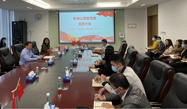 10月22日下午,聯(lián)港公司黨支部在5樓會(huì)議室召開(kāi)黨員大會(huì),會(huì)議由支部副書(shū)記邱影主持,公司總經(jīng)理龍?chǎng)纬鱿瘯?huì)議。