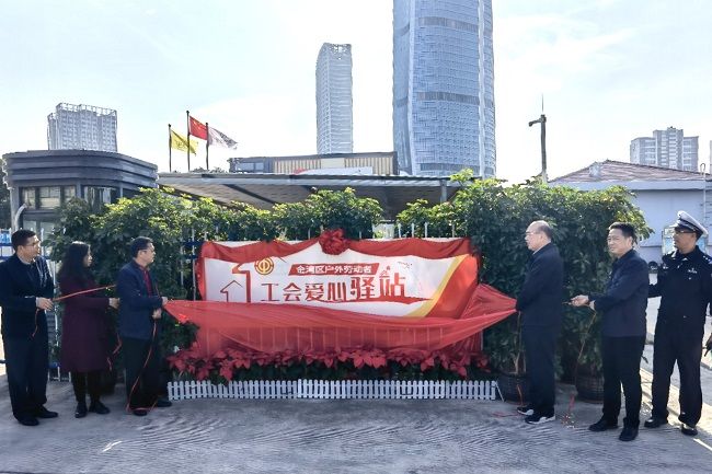 1月6日上午,航空新城戶外勞動(dòng)者工會(huì)愛(ài)心驛站舉辦揭牌儀式,市總工會(huì)黨組書(shū)記、常務(wù)副主席唐尚洪,市總工會(huì)副主席梁斌,金灣區(qū)人大常委會(huì)副主任、區(qū)總工會(huì)主席吳耀東,市總工會(huì)維權(quán)和職工服務(wù)部部長(zhǎng)鄧康,區(qū)總工會(huì)黨組書(shū)記、常務(wù)副主席卓少卿,區(qū)交警大隊(duì)副大隊(duì)長(zhǎng)賴遠(yuǎn)強(qiáng),聯(lián)港集團(tuán)黨總支書(shū)記、副總經(jīng)理李增旺,聯(lián)港城運(yùn)公司總經(jīng)理趙楠,以及各鎮(zhèn)總工會(huì)的有關(guān)負(fù)責(zé)同志和來(lái)自交警、環(huán)衛(wèi)、快遞、網(wǎng)約車、外賣等戶外勞動(dòng)者代表共30人出席,儀式由區(qū)總工會(huì)副主席李輕舟主持。